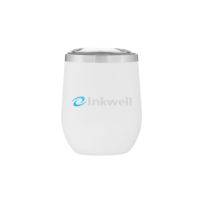 12 oz double wall 18/8 stainless steel thermal tumbler with copper vacuum insulation, stainless steel rim, push-on clear lid, and powder coated finish · gift box included